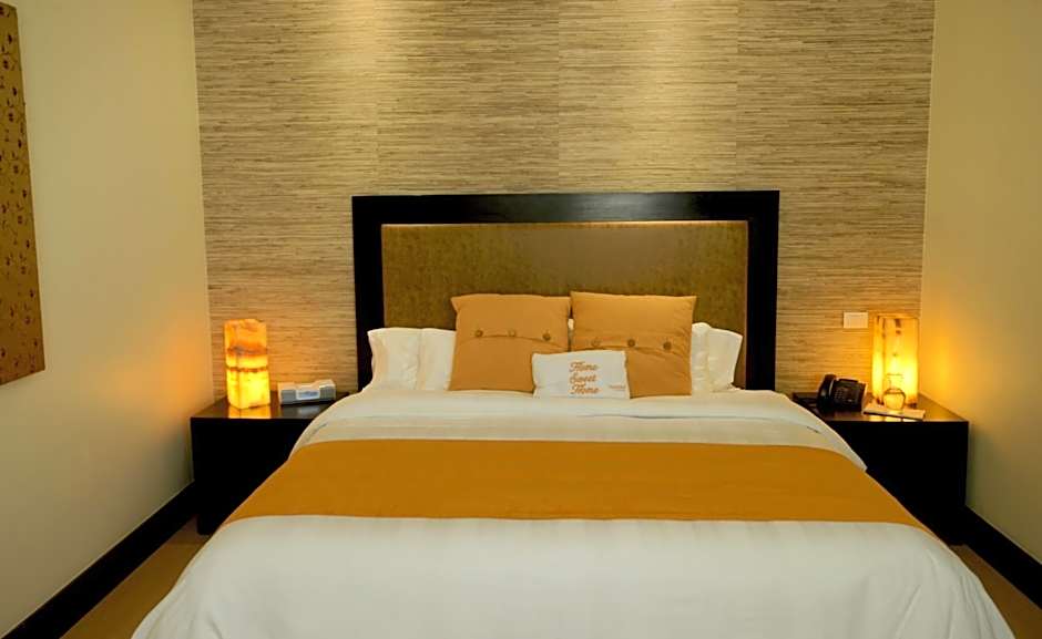 This suite features 1 bedroom with a king-size bed, a living-dining room, and a fully equipped kitchen.